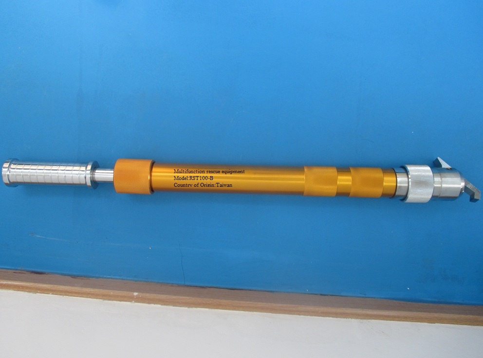 Joystick, forcible entry axe, 3 inches wide chisel, 1 inches wide chisel, metal cutting knife, break-lock knife, pike and shovel.